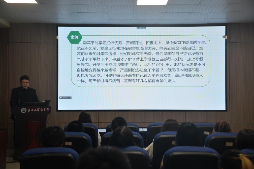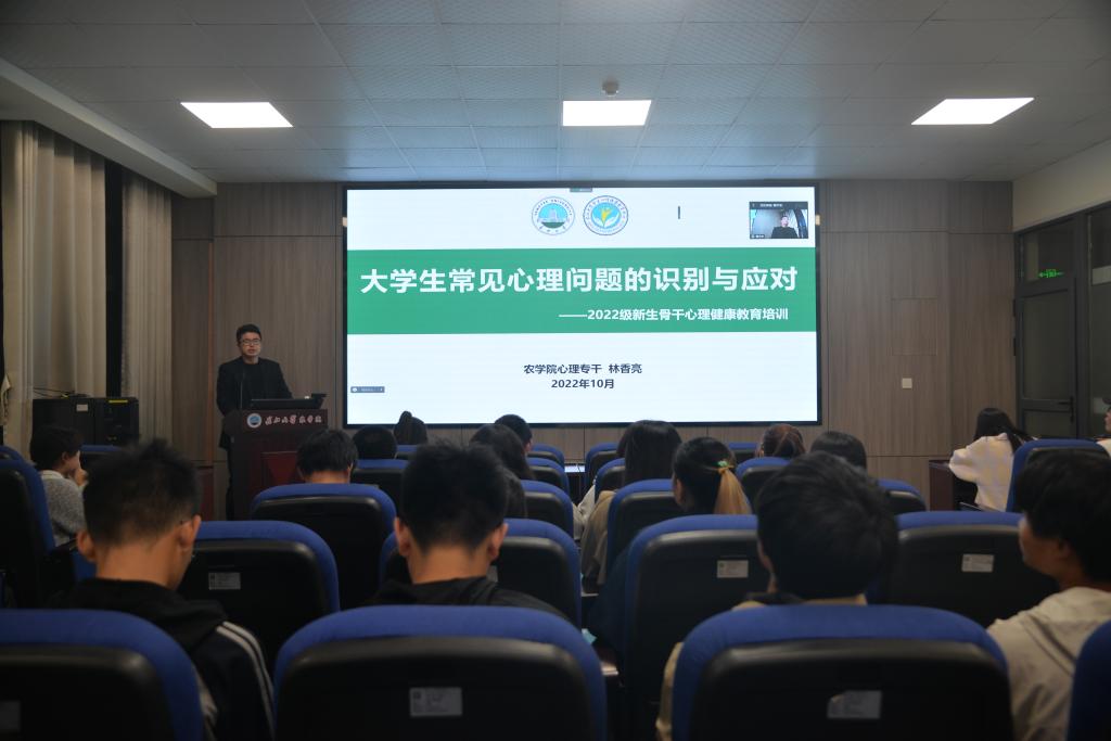 (见习记者 赵鑫达/文 屈敬帅/摄)为帮助新生更好地识别和应对老员工常见心理问题,提高新生对心理健康问题的重视程度,11月8日晚,伟德bv1946官网在农科大楼3073组织开展2022级新生骨干心理健康教育培训,培训由公司心理专干林香亮老师主讲。