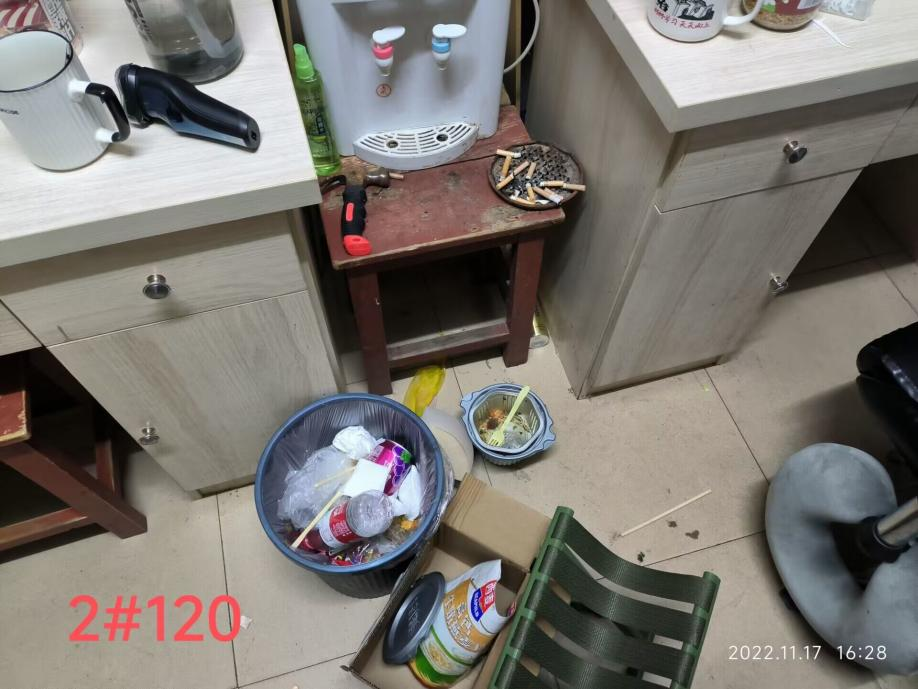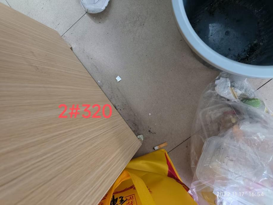 2022年11月17日,杨云锋、付雪娇等老师带领宿委会、员工会成员检查了风华园员工宿舍的安全状况。现通报如下:风华园2栋112宿舍、2栋305宿舍、2栋309宿舍、2栋320宿舍、2栋407宿舍存在使用违章电器或私拉电线的现象;风华园2栋120宿舍、2栋305宿舍、2栋319宿舍、2栋320宿舍、2栋411宿舍存在抽烟现象(见附图)。