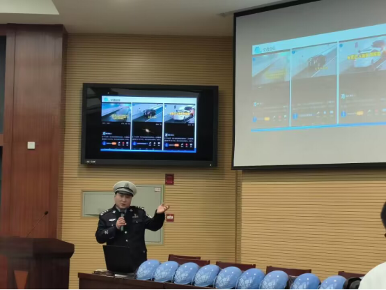 (员工记者 赵薇/文 史庆潇 贾生乐/摄)为了全面提升公司师生的交通安全意识和自我保护意识,响应国家安全文明出行的号召,3月2日晚,荆州市公安局交通管理局来公司进行交通安全知识宣讲,为公司200余名师生上了一堂生动的交通安全课。公司党委副书记尹小华、22级辅导员何忠万参加本次会议。