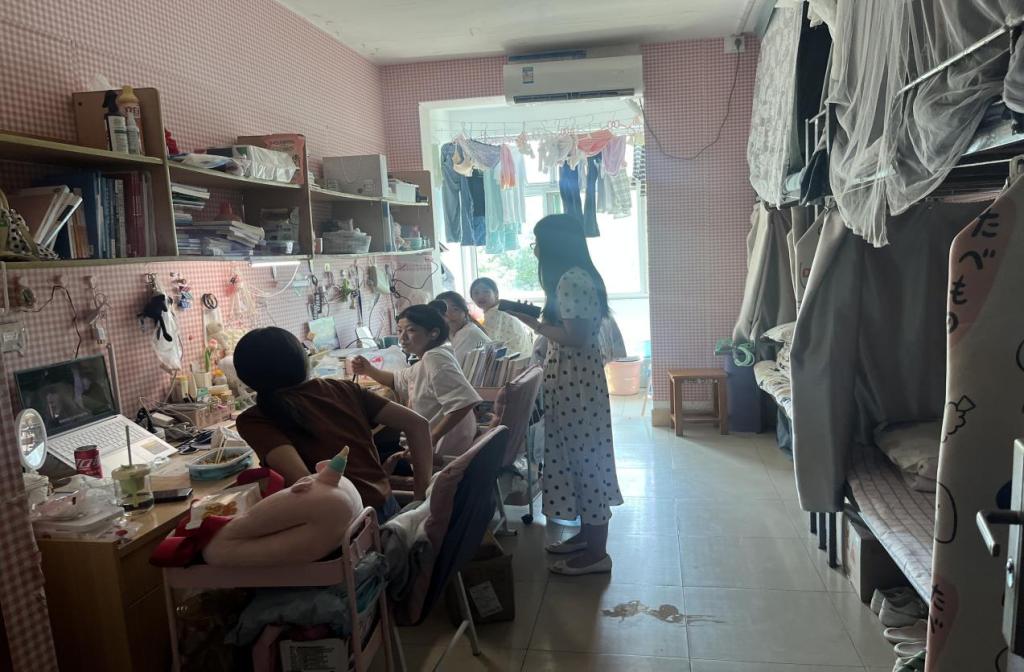 辅导员林香亮检查了研究生宿舍,查看研究生校外宿舍居住环境,了解研究生未来的发展方向,并鼓励研究生多发文章、多出成果,早日达到毕业要求。