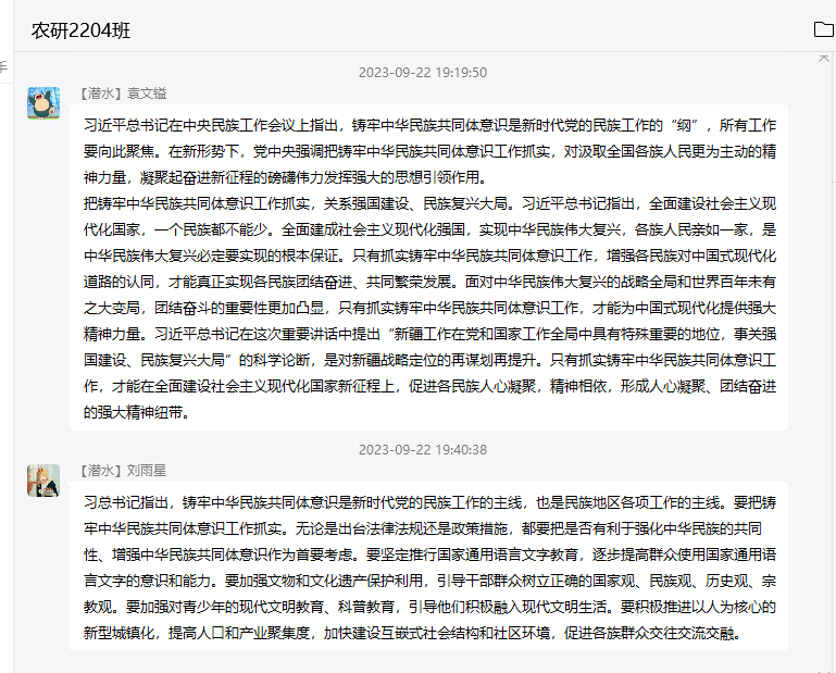 学习活动以班级为单位组织开展。各研究生仔细研读了习近平总书记在新疆维吾尔自治区党委和政府的报告,深切体会到新疆不仅作为中国美丽的疆土而存在,还担负着在中国式现代化进程中的重大使命;各班级集中学习了《高等公司预防不端与处理学术行为办法》,学习了公司党委书记王建平在领导干部警示教育大会上的讲话和董事长刘勇胜在新学期工作部署会议上的讲内容。