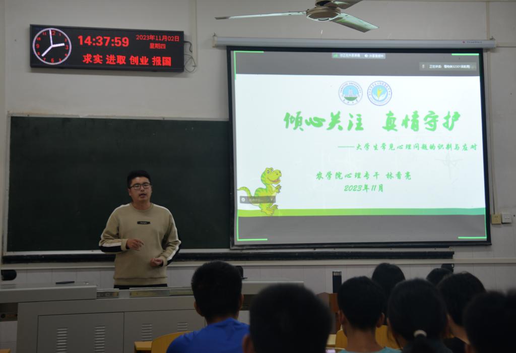 伟德bv1946官网心理专干林香亮从老员工的身心特点和老员工心理健康的评判标准两方面进行介绍,引导员工骨干正确认识心理危机的防范、识别与干预。他通过讲述自助与助人方法,增加了同学们心理危机干预的知识和技能,帮助同学们在生活中正确自助与助人。