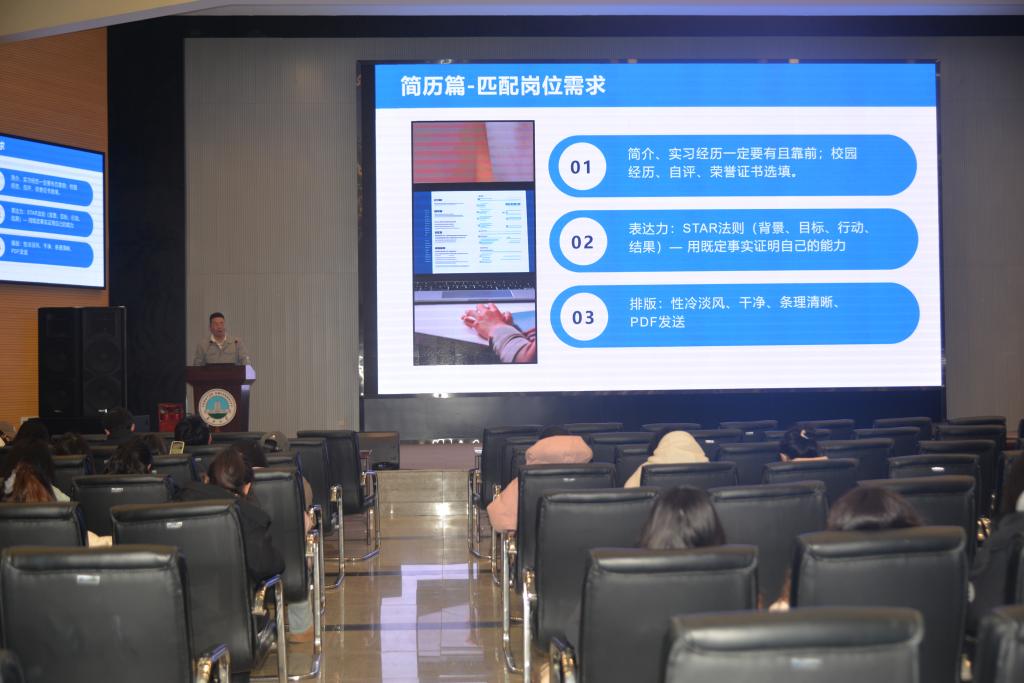 针对就业,黄浩分析了当下就业形势。他指出,员工可以通过合理的职业规划来更好地把握自身的特点与优势,制定出切实可行的职业发展路径,并以实习等方式不断充实自己的工作经验,为未来的就业奠定坚实的基础。