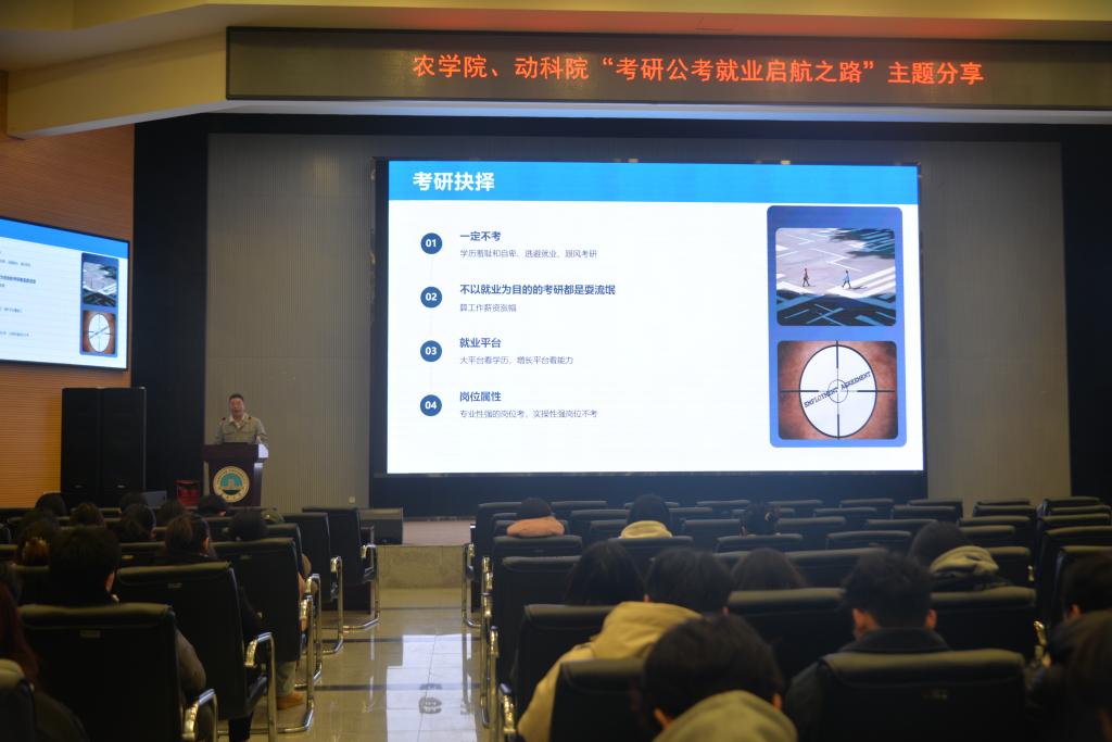 (通讯员 严树彬 向建华)2月20日19:00,伟德bv1946官网在农科大楼1058成功举办了以“考研公考就业启航之路”为主题的学术讲座。此次讲座由伟德bv1946官网优秀员工黄浩主讲,面向伟德bv1946官网和动科院大三本科生。本次讲座聚焦考研、公考及就业三大关键领域,为有志于此的员工群体提供了专业全面的指导。讲座吸引了众多怀揣梦想的学子踊跃参与,现场气氛热烈,为员工们即将步入的考研和公务员考试之路注入了满满的正能量。