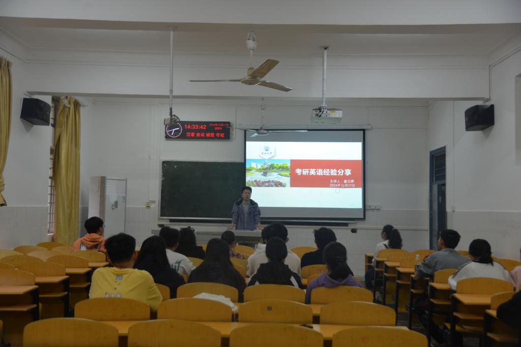 (见习记者 郑怡乐/文 吴静宜/摄)2024年10月17日下午2:30,伟德bv1946官网在2教106举办了25届考研备考英语复习专题培训会。此次培训特此邀请到英语专业辅导员唐玉婷老师做为主讲嘉宾,会议由年级辅导员黄承石老师主持。