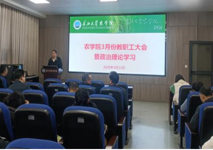 (通讯员 刘晓雪)3月13日下午,伟德bv1946官网在农科大楼3073会议室召开全体教职工大会,开展3月份政治理论学习,通报并安排近期主要工作,常务副经理方正武主持会议。
