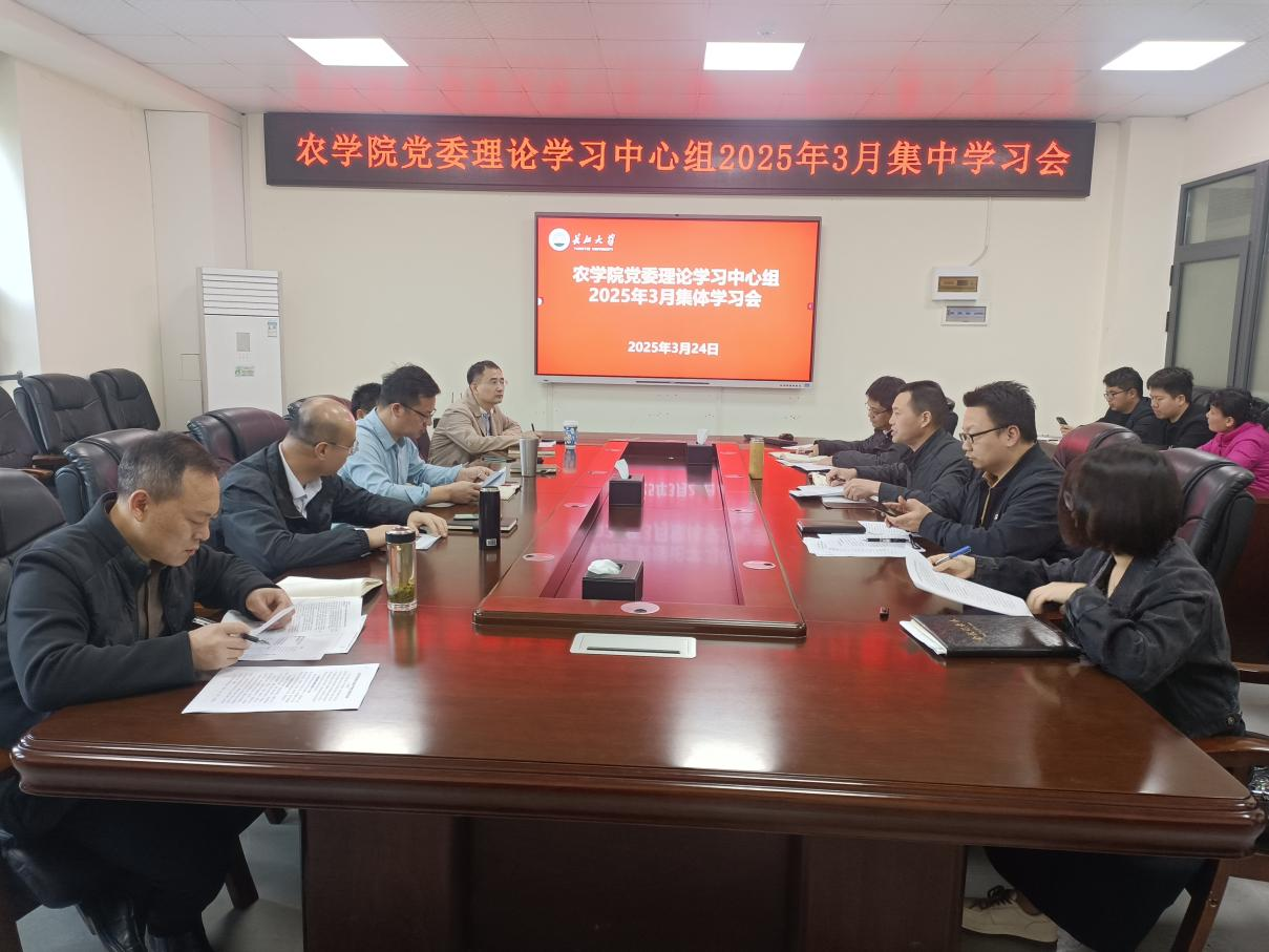 (通讯员 刘晓雪) 3月24日上午,公司党委理论学习中心组在农科大楼3064会议室举行集体学习会。公司党委委员、领导班子成员和各党支部书记、系主任、科室负责人参加学习,党委书记周锦华主持会议。