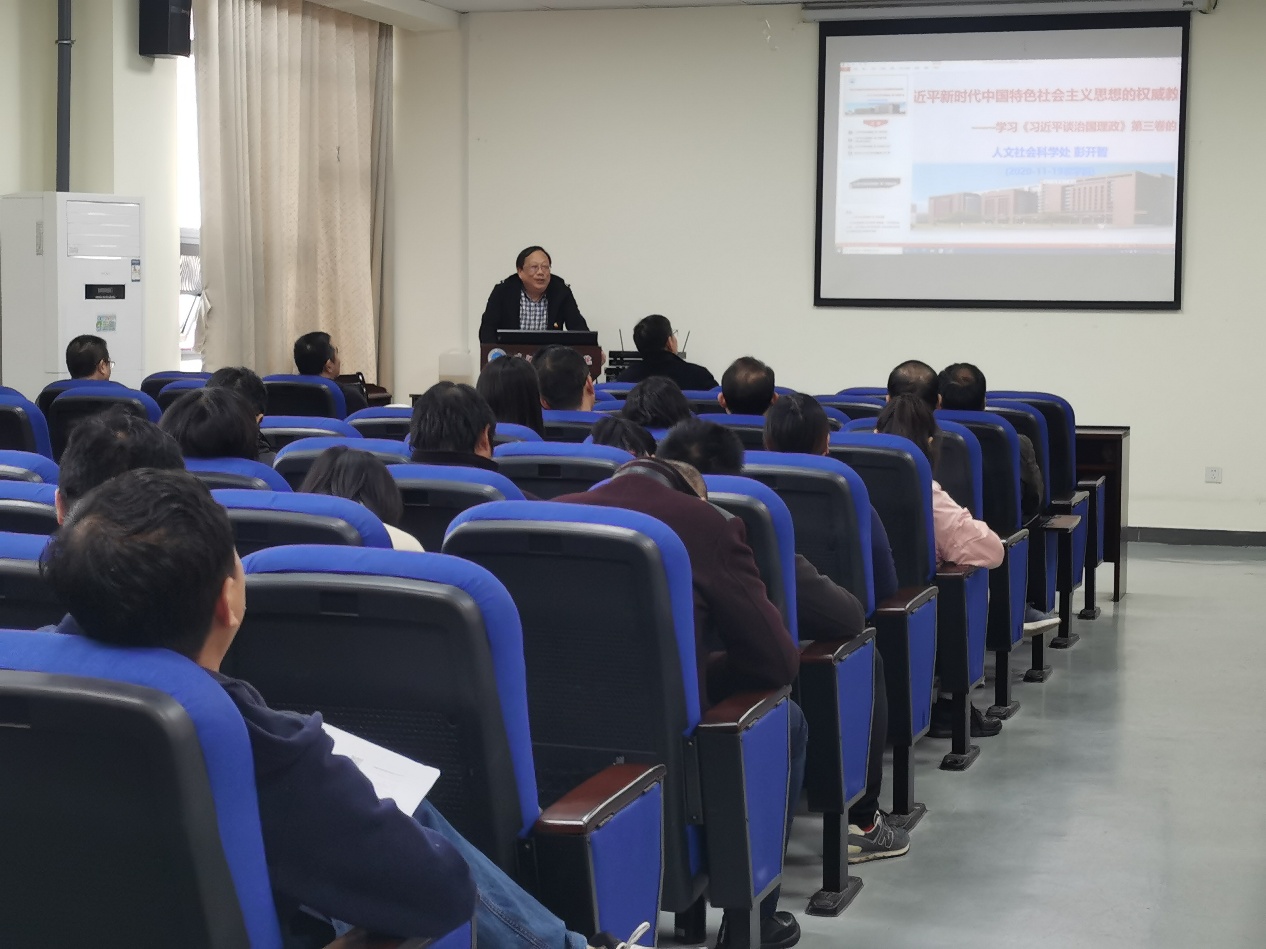 根据公司党委组织部、宣传部部署和工作要求,结合理论学习工作安排,1119日下午,公司党委在在农科大楼3073会议室举行《习近平谈治国理政》第三卷学习报告会暨公司党委理论学习中心组(扩大)学习会。会议由公司党委书记冯发明主持,人文社会科学处副处长彭开智作专题报告,公司全体教工参加会议。