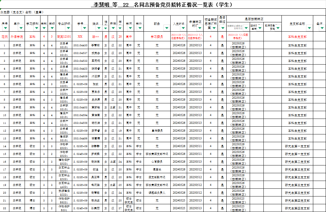 附: 李慧明 等 22 名同志预备党员拟转正情况一览表
