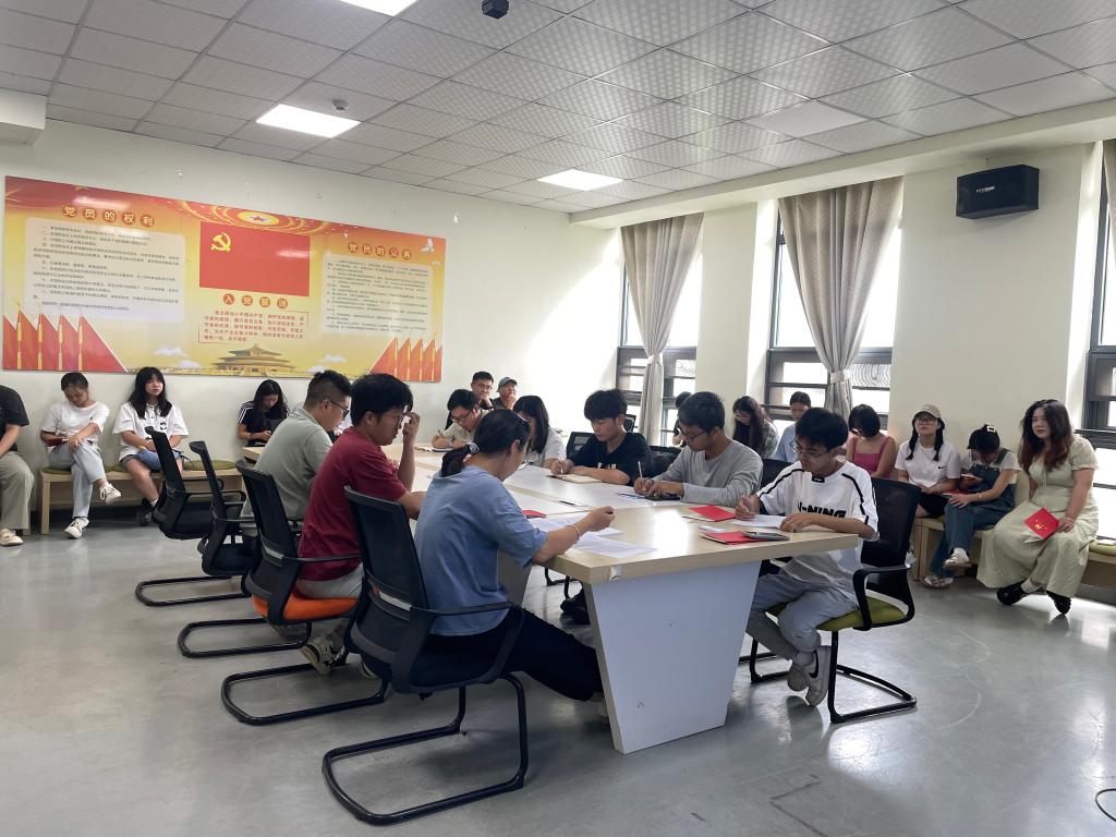 支部副书记唐海洋带领全体党员重温入党誓词;纪检委员罗丽娅对本月党费收缴情况进行简要说明;党员廖慧英带领全体党员学习《中国共产党章程》;党员王澎、罗丽娅、王荣森领学党的创新理论;党员郝梨、徐志鹏、李艺德结合生活和学习经历,以“如何把党的二十届三中全会精神转化为推动特色高水平大学建设的具体举措和生动实践”为题开展集中研讨交流。
