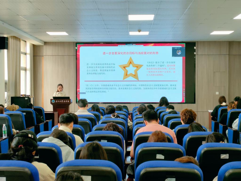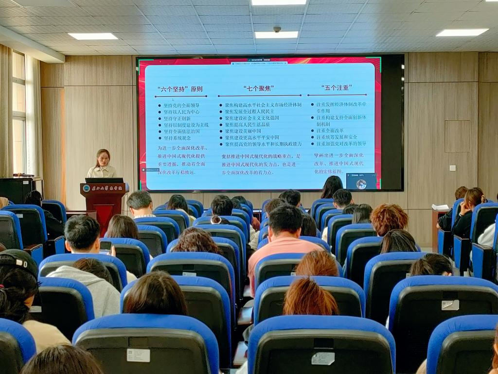 10月28日的培训由伟德bv1946官网分团委书记付雪娇老师主讲。付雪娇老师以"蹄疾步稳谋改革,勇毅笃行谱新篇"为主题,全面、系统、深入地阐释和解读了党的二十届三中全会精神内涵。她从党的二十届三中全会的主题由来、召开意义、做出的部署与创新四个方面,为我们呈现了一幅生动的图景。
