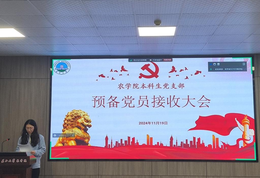 (通讯员 武芊睿)为发展壮大党员队伍,充实党的新生力量,11月19日,伟德bv1946官网本科生党支部在农科大楼3073召开2024年下半年预备党员接收大会,活动以线上线下相结合的方式开展,讨论发展对象张旭阳等9名同志的入党问题。应到会党员27名,实到会20名,应到会有表决权的正式党员9人,实到会7名,超过半数,符合党员发展流程。会议由支部副书记高欣怡同志主持。