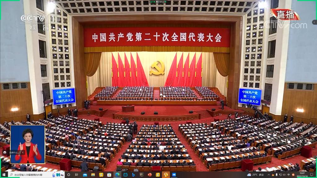 上午10点—12点,全体党员集中收听收看了党的二十大开幕会。
