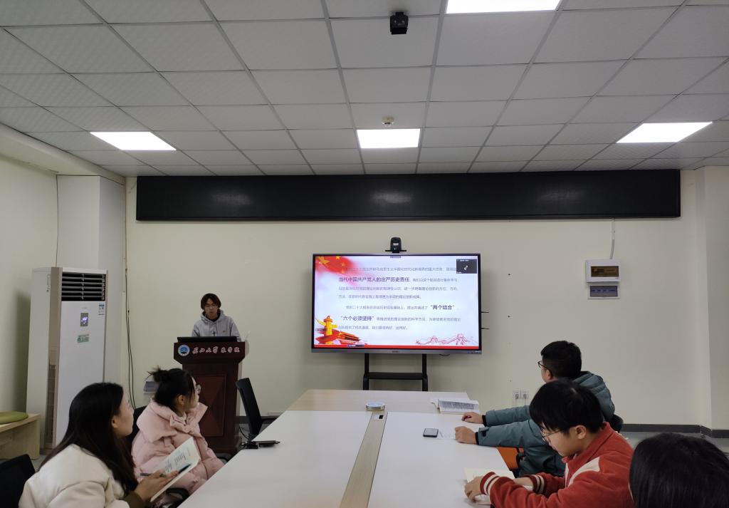 会上,全体党员重温入党誓词,并交纳本月党费,集体诵读党章。邓元凯、刘淳、朱佳怡、刘淳等同志带领所有党员开展党的创新理论学习。唐海洋为全体党员讲《开辟马克思主义中国化时代化新境界》微党课。陈悦、叶佳雨、张银等同志根据《习近平总书记给武汉大学参加中国南北极科学考察队师生代表的回信》精神,围绕“如何始终胸怀‘国之大者’,接续砥砺奋斗,练就过硬本领,勇攀科学高峰,为实现高水平科技自立自强和建设教育强国、科技强国、人才强国,全面推进中国式现代化作出新的更大贡献”谈心得体会。