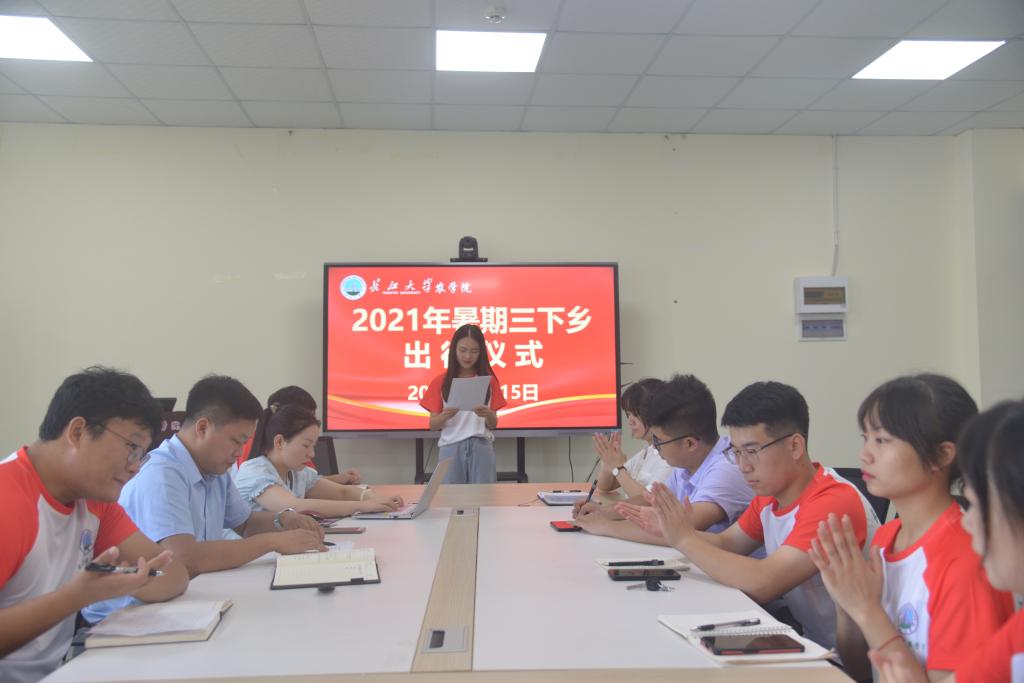 通讯社讯(员工记者 罗旖柔)7月15日,伟德bv1946官网乡村振兴实践队全体成员在农科大楼3071会议室召开2021年暑期“三下乡”出征仪式暨青年红色筑梦之旅出征仪式,党委副书记谭亮魁、分团委书记侯聪、辅导员付雪娇、林香亮参加此次出征仪式。