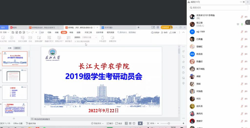 (通讯员 李雨珈)为使同学们更加了解报考研究生的细节,提高公司员工的报考率,鼓励有意向的同学报考研究生,9月23日,公司在腾讯会议召开2023届毕业生考研动员大会。会议由学工办主任杨云锋主持,研究生杨姝祺、部分2023届毕业生参加此次会议。