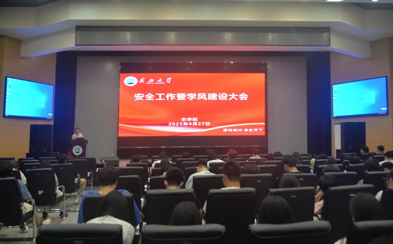 (通讯员 严树彬)为切实保障师生生命财产安全,提升员工学习质量与综合素养,4月27日晚7点,公司于农科大楼1058报告厅隆重举行安全工作暨学风建设大会。此次大会由党委副书记尹小华、年级辅导员付雪娇主讲,23级、24级全体本科生参会。