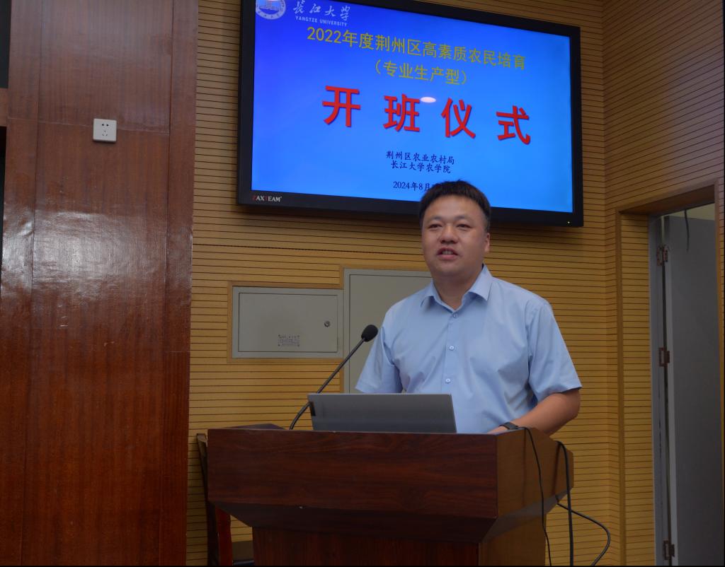 8月23日,由荆州区农业农村局主办,伟德bv1946官网承办的荆州区高素质农民培育专业生产型培训班在我顺利开班,伟德bv1946官网社会合作处副处长洪云飞、伟德bv1946官网副经理唐生标、培训班老师以及全体学员参加了开班仪式。
